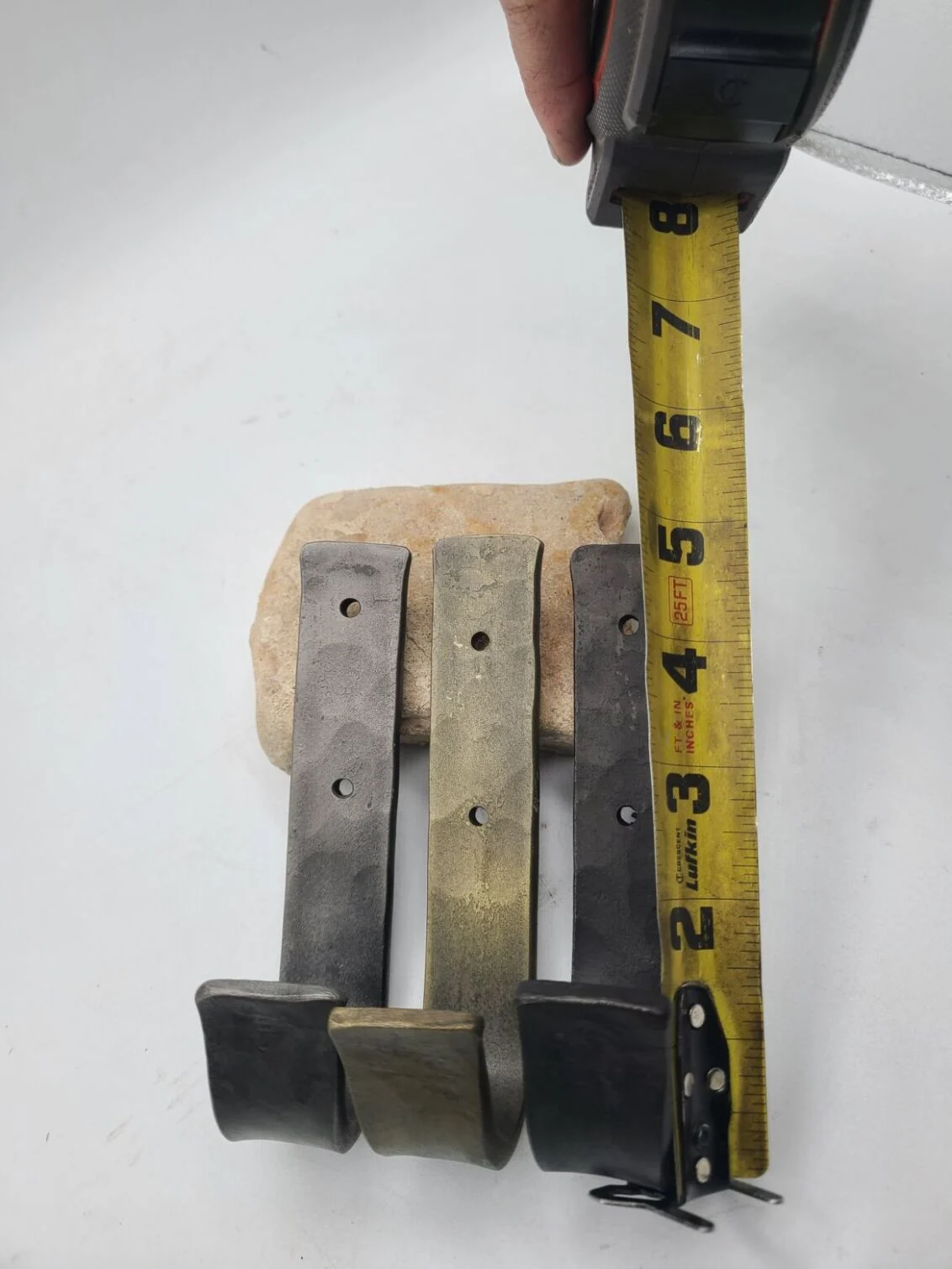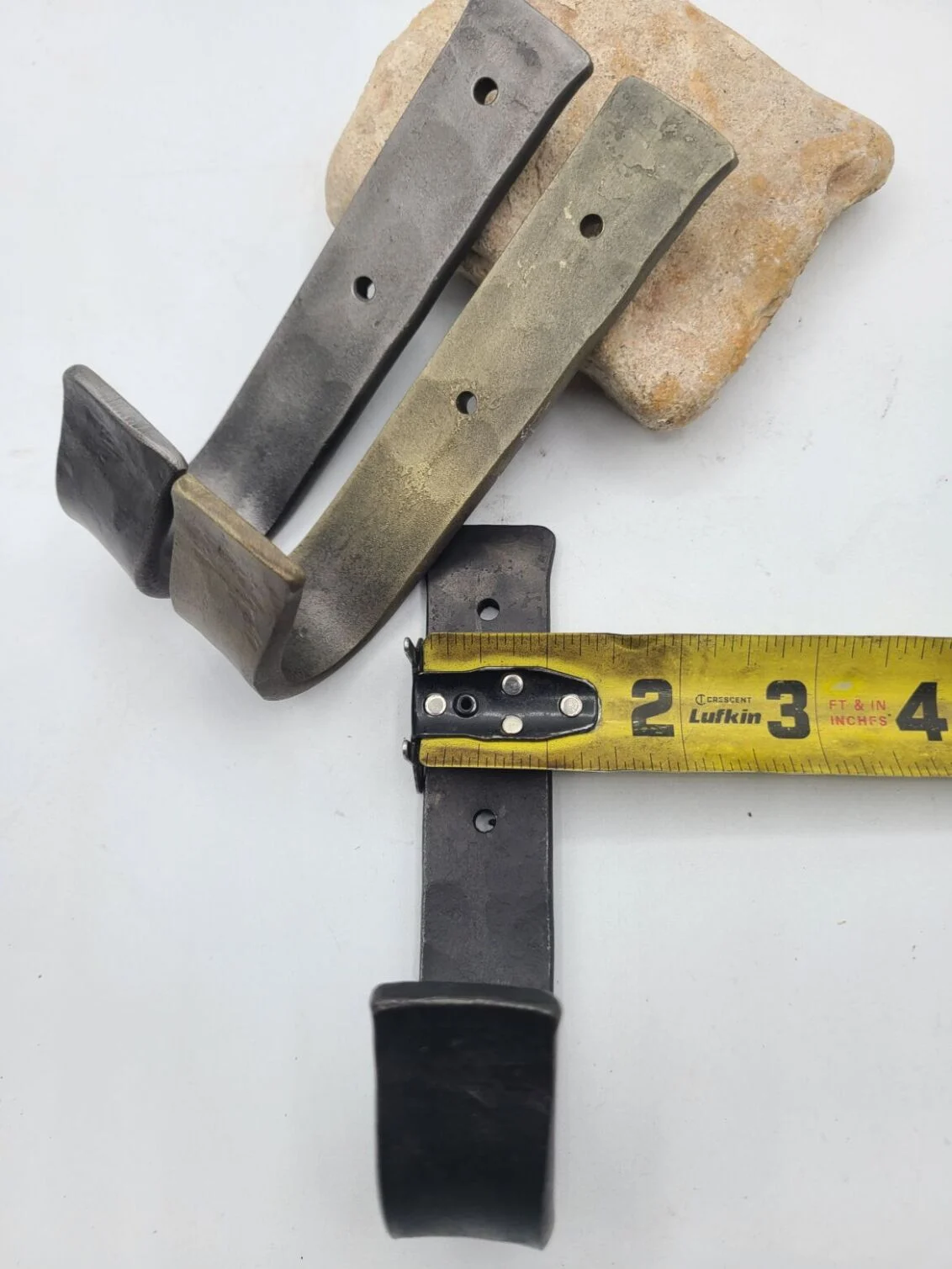 Items are hand made using traditional blacksmithing techniques, therefore no two are exactly the same. Small variations in dimensions and shape may be present in each piece. Items may vary from photos slightly. These variations only add to the unique beauty of each piece, and are a testament to their authenticity as hand forged items. All items are hand forged from solid iron. Custom material sizes available upon request.